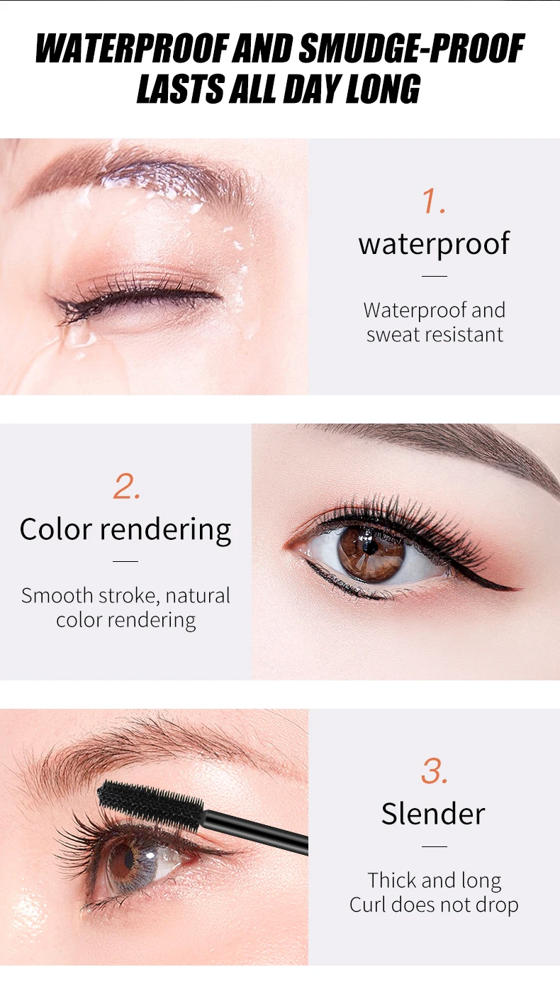 The advanced 4D brush coats every lash, adding instant thickness, curl, and lift without clumps or smudges. Waterproof, long-lasting, and resistant to humidity — your lashes stay bold and defined all day.