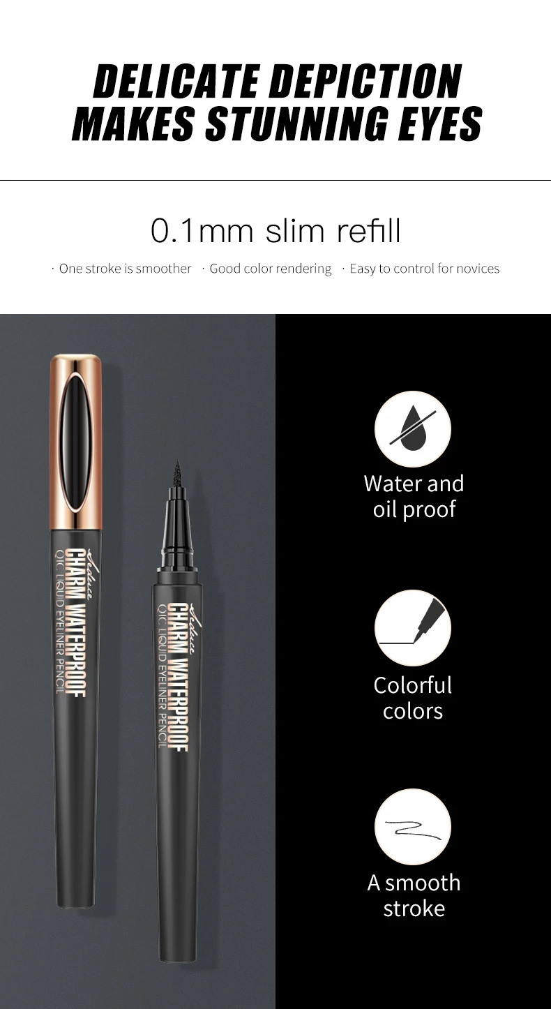 The ultra-fine Liquid Eyeliner Pencil delivers deep black color with precise strokes for perfect lines — from subtle elegance to bold cat-eye looks. Its smooth-glide formula ensures easy application and a clean finish every time.