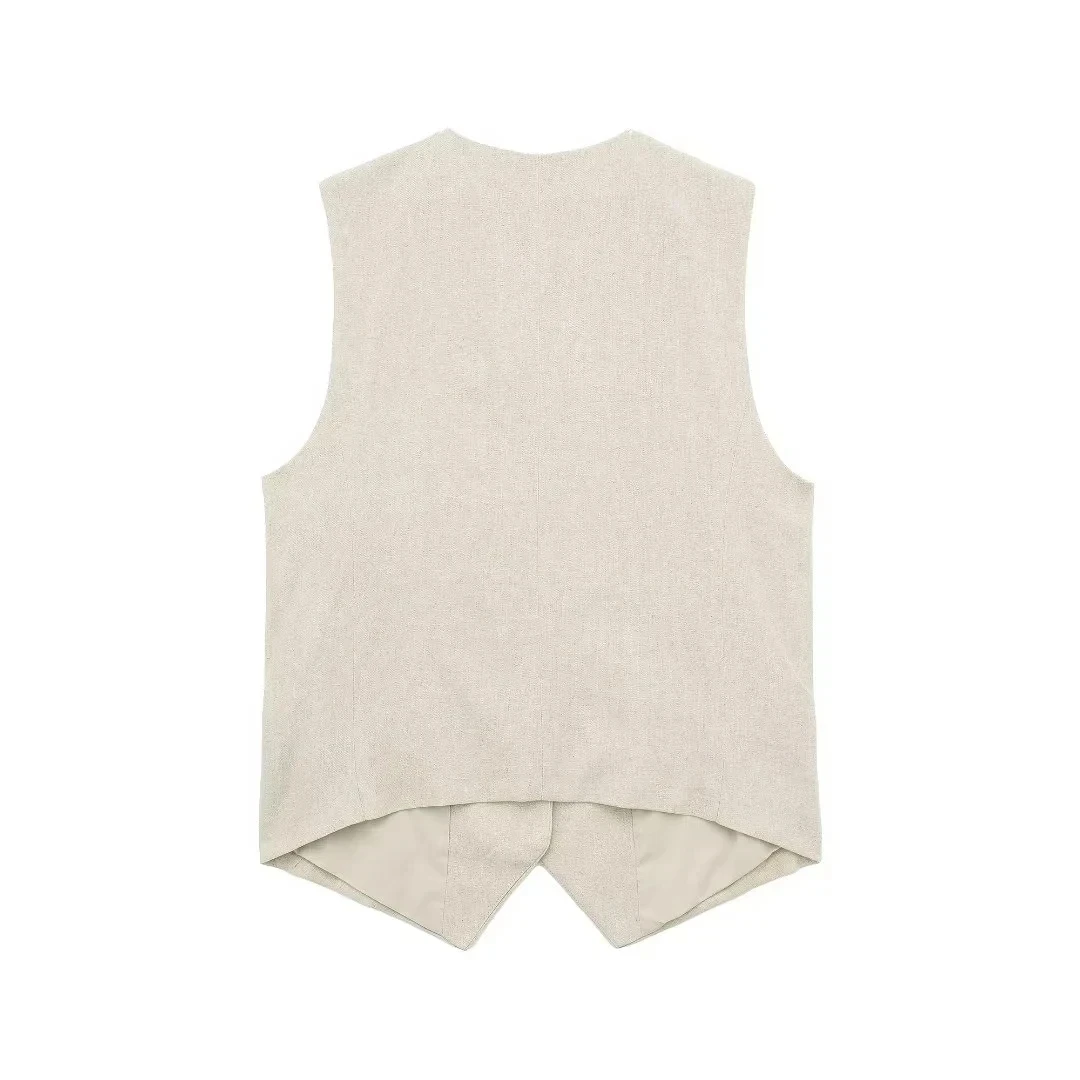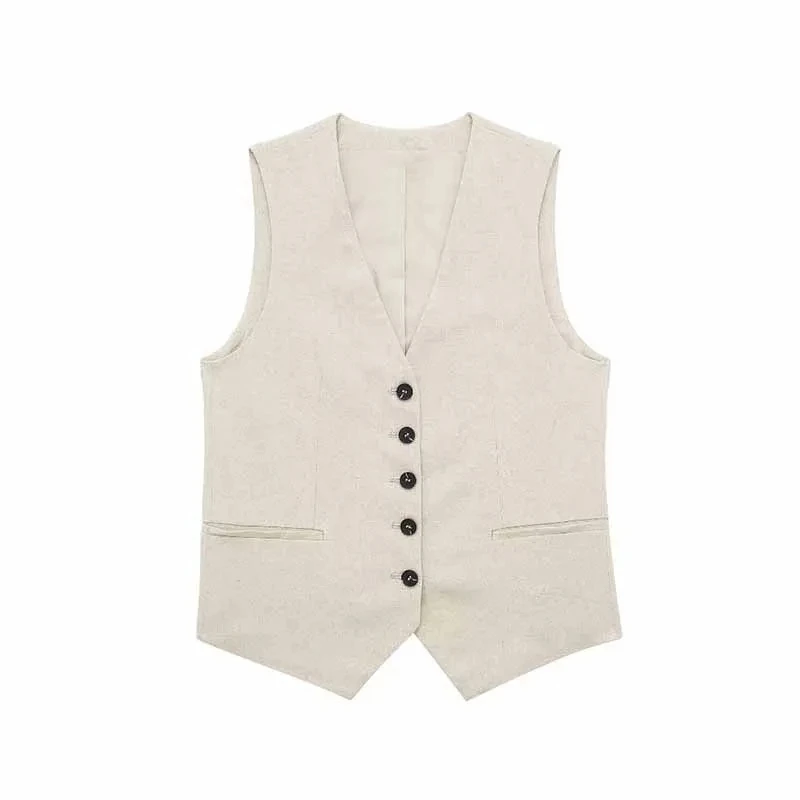 Discover the Women’s Linen Vest Shorts Set, the perfect choice for those who seek style, comfort, and versatility. This outfit combines an elegant V-neck vest with modern button closure and high-waist shorts with a zipper, creating a chic and sophisticated look for any occasion.